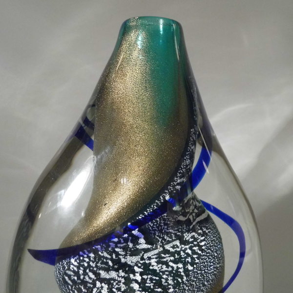 This features blue spirals, gold flecks and a green shaded centre.It measures cm high.
